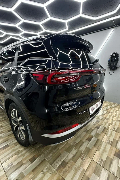 Для полировки Cherry Tiggo Pro Max была выполнена комплексная мойка кузова с применением бесконтактной химии, удалены битумные и металлические загрязнения, поверхность обезжирена и тщательно осмотрена на наличие дефектов.